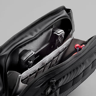 Stash handheld gaming with an ultra-protective sleeve and dedicated cartridge pockets. Switch positions and deploy rapidly with a one-touch buckle and branded comfort strap.