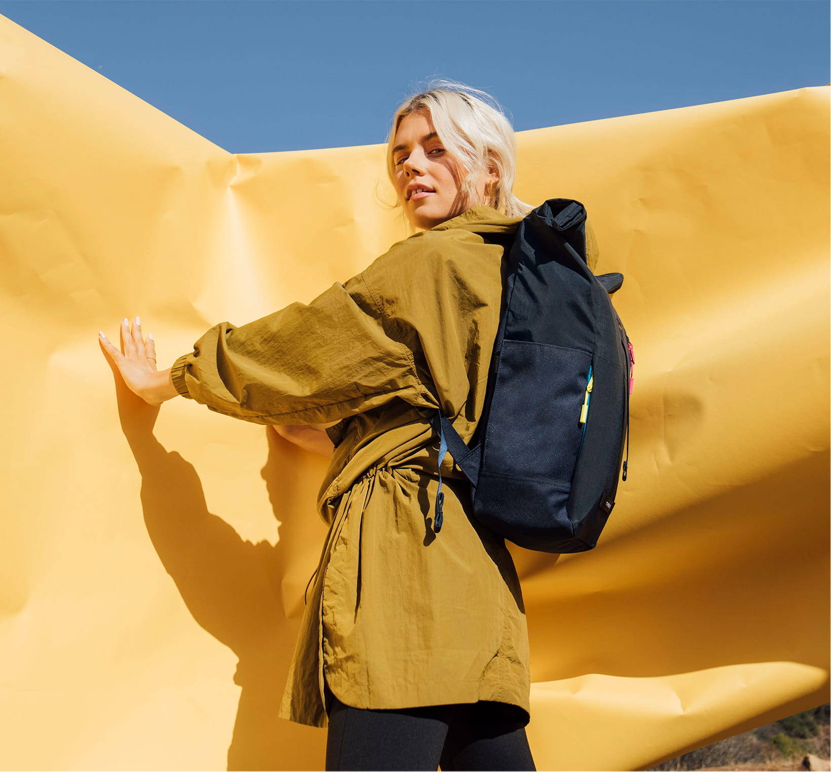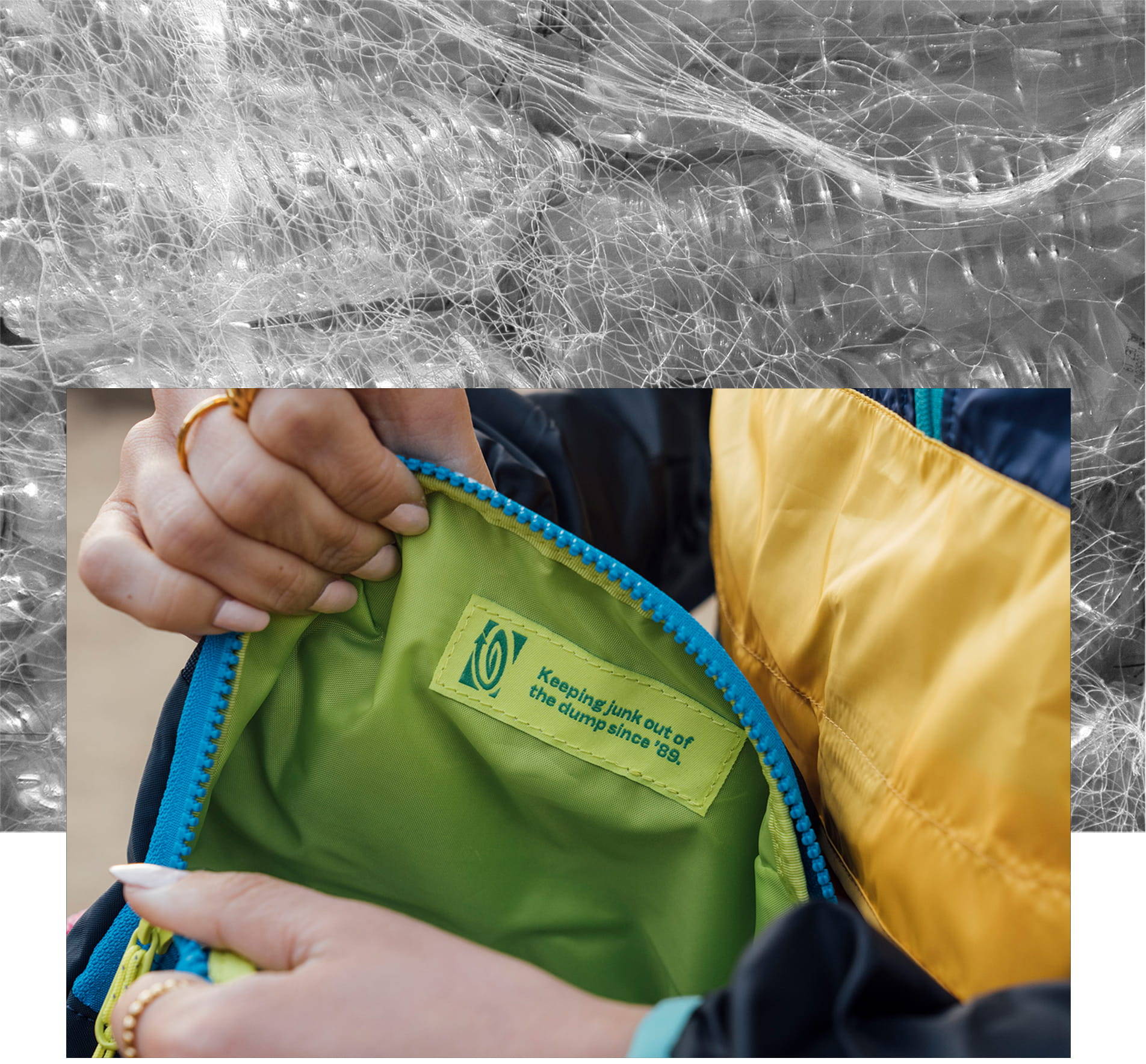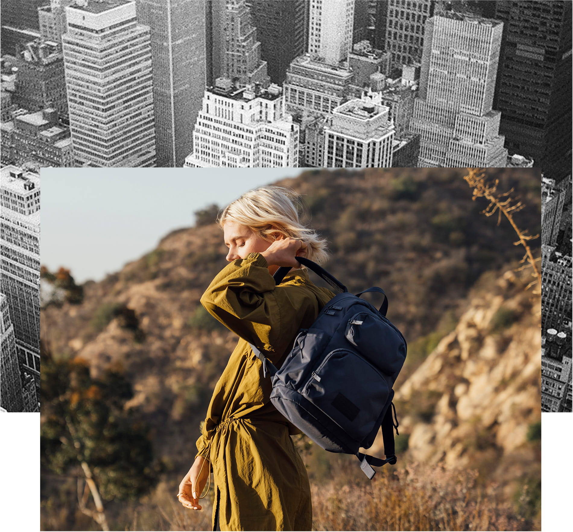 Crossbody, Sling, Convertible Tote and Backpack. Made with 100% recycled goodness.