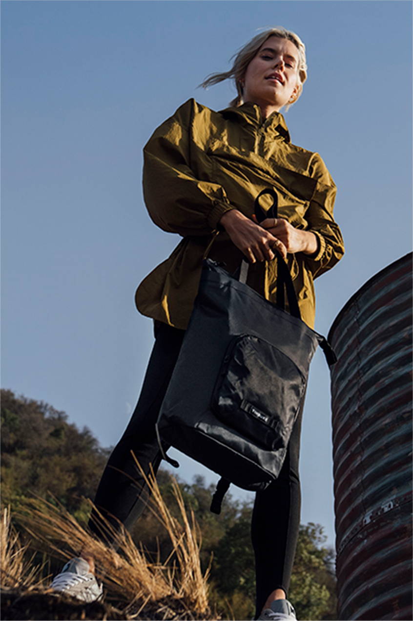 Crossbody, Sling, Convertible Tote and Backpack. Made with 100% recycled goodness.